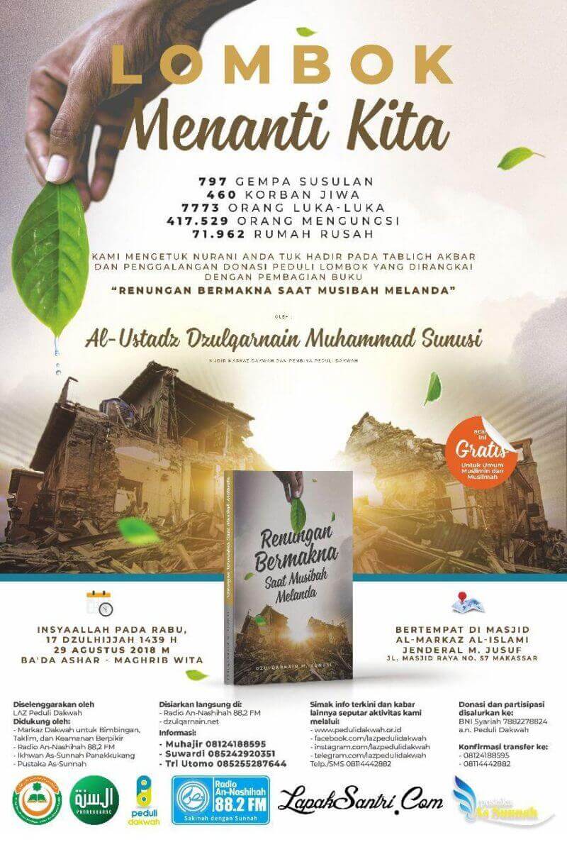 Kami mengajak Anda untuk hadir pada Tabligh Akbar dan Penggalangan Donasi Peduli Lombok yang dirangkai dengan pembagian buku