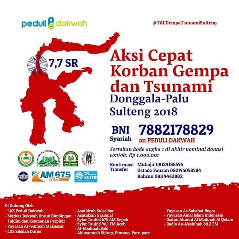 ⏩ Oleh sebab itulah kami yang tergabung dalam TIM AKSI CEPAT untuk KORBAN GEMPA & TSUNAMI SULTENG” dengan menggugah hati kaum muslimin & muslimat untuk ikut merasakan dan peduli terhadap musibah yang menimpa saudara kita di Donggala, Palu dan wilayah lainnya di SULTENG.